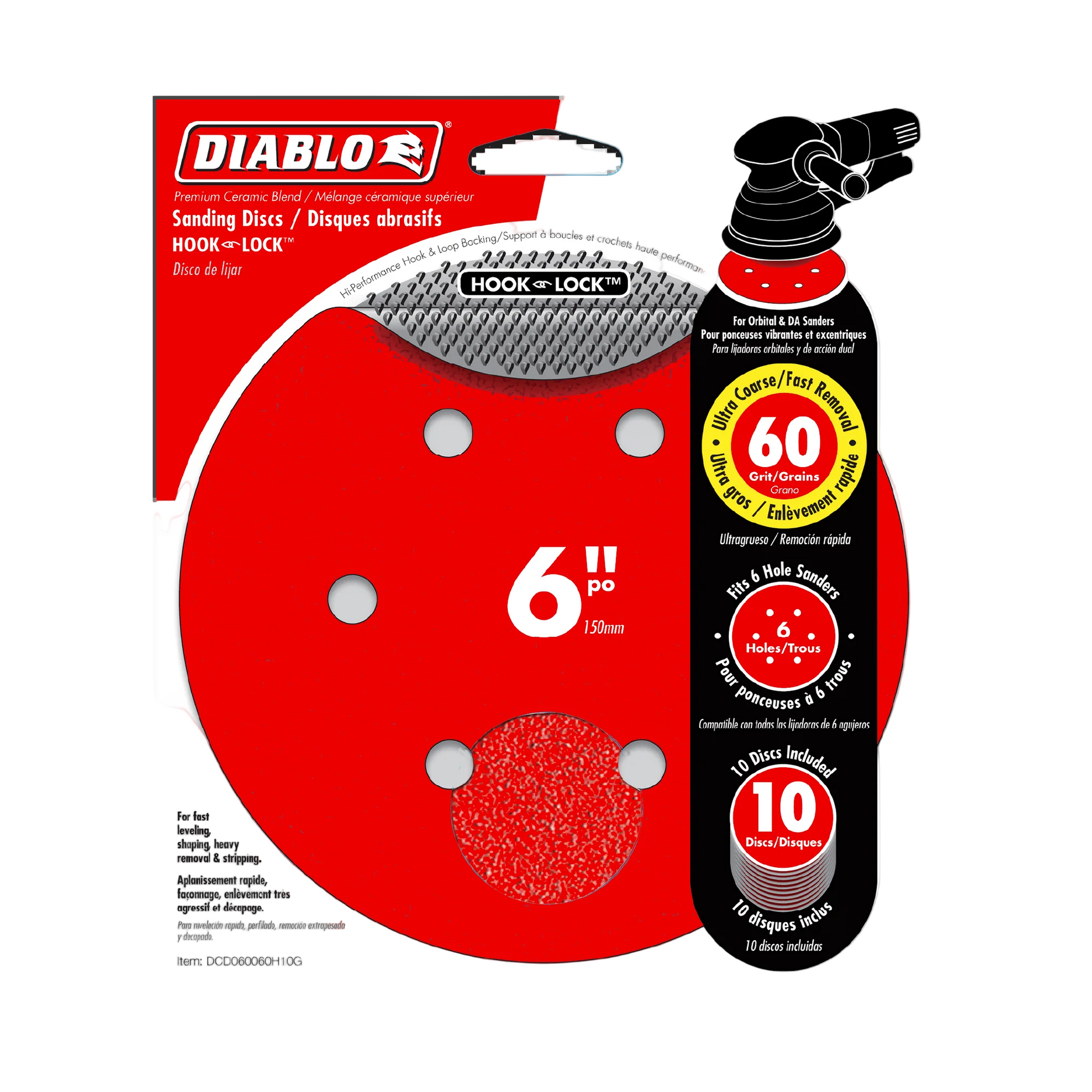 • Diablo's top-quality 6-inch Random Orbital Sander Discs feature Hook and Lock backing, incorporating advanced innovations that boost efficiency, prolong disc durability, and enhance overall productivity. Perfectly suited for orbital and DA sanders, these discs deliver excellent results on wood, metal, and plastic surfaces.
