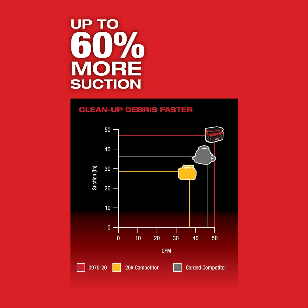 Milwaukee, 0970-20 M18 FUEL 18 V Lithium-Ion sans balais PACKOUT Aspirateur sec/humide de 2,5 gallons - Outil uniquement 75031
