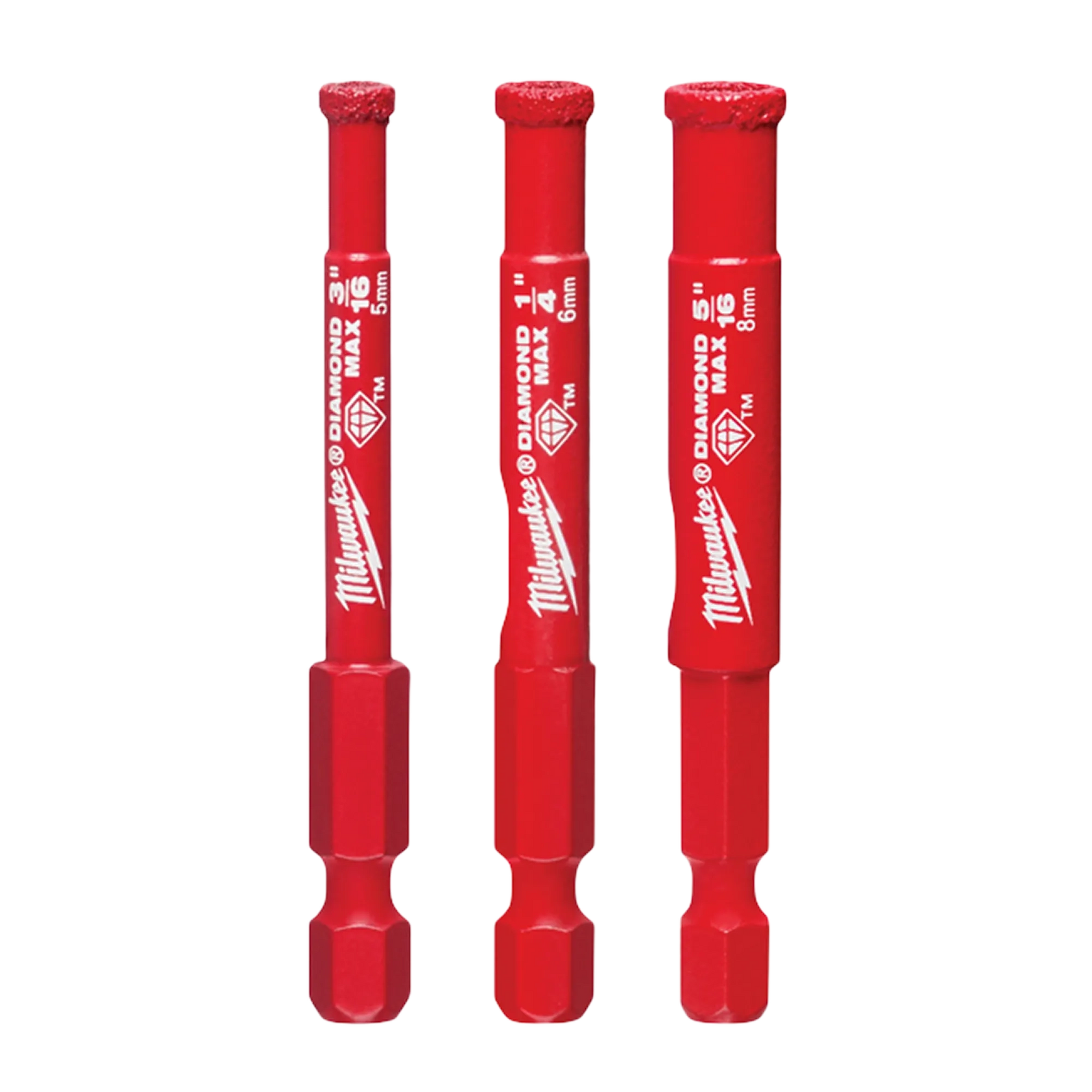 • Scie cloche Milwaukee® Diamond MAX™ pour une durée de vie jusqu'à 10 fois plus longue lors de la coupe de carrelage, de pierre et de verre. Les scies cloches Diamond MAX™ offrent les meilleures performances de leur catégorie, avec des diamants de qualité supérieure pour une résistance maximale à la chaleur et à la fracture. Un brasage amélioré offre une rétention supérieure du diamant lors de la coupe de matériaux durs et abrasifs. La scie cloche monobloc est dotée d'une tige hexagonale à changement rapide de 1/4" et dispose d'une grande fente d'éjection des limaces. Conçue comme la solution de coupe unique pour toutes les applications de carrelage, de pierre et de verre, Diamond MAX™ offre le coût par pièce le plus bas. trou sur le marché.