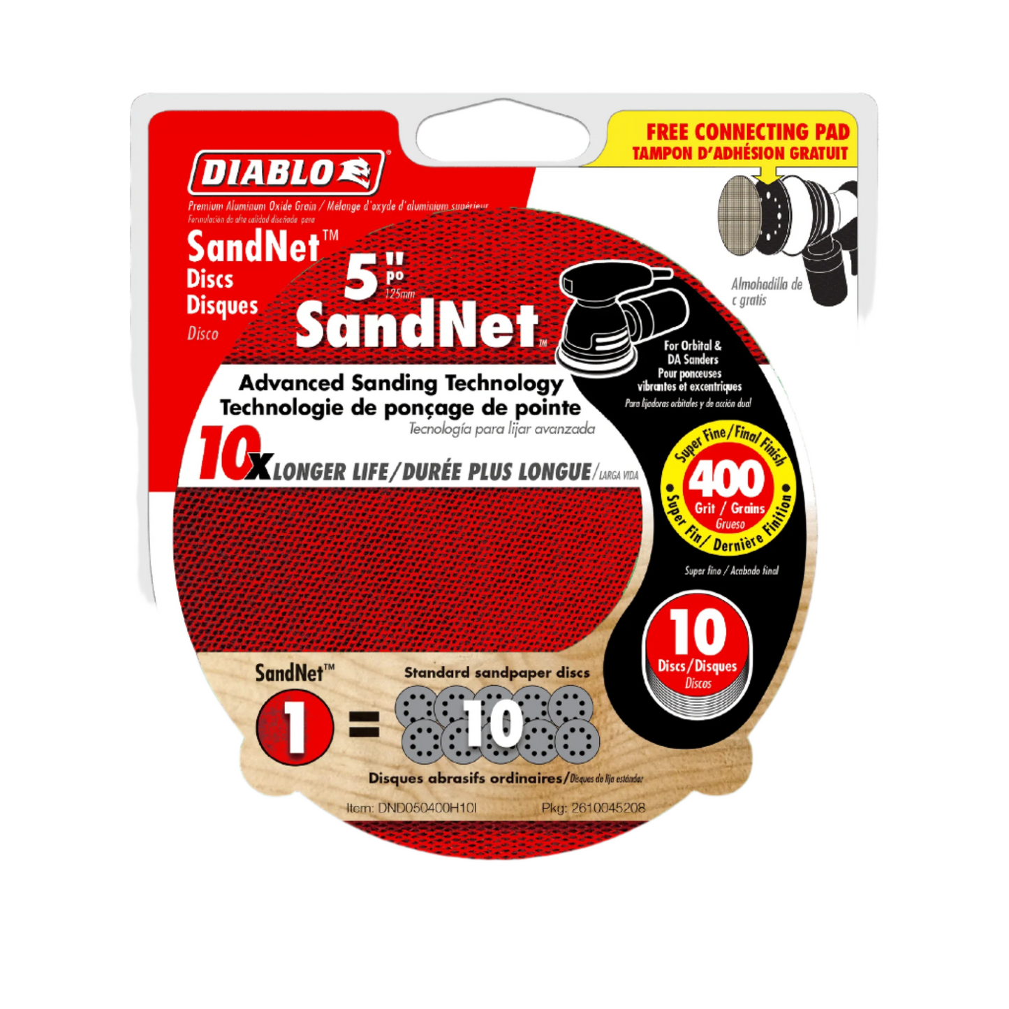 • Diablo’s new SandNet™ discs are the most advanced sanding technology on the market with 10x longer life versus standard sanding discs.