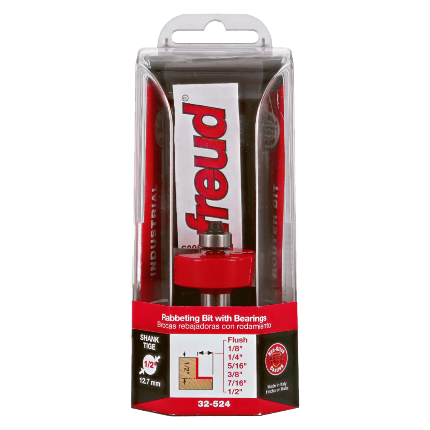 • The Freud 32-524 Rabbeting Bit Set 1/2'' Shank is perfect for creating rabbets, dados, and grooves. Its patented design features two cutting edges for a smooth finish and superior performance in soft and hard woods. The Router bit feature Freud’s TiCo Hi-Density Carbide cutting edges for long lasting sharpness and maximum durability. With its heavy-duty construction, this set is built to last through years of tough use.