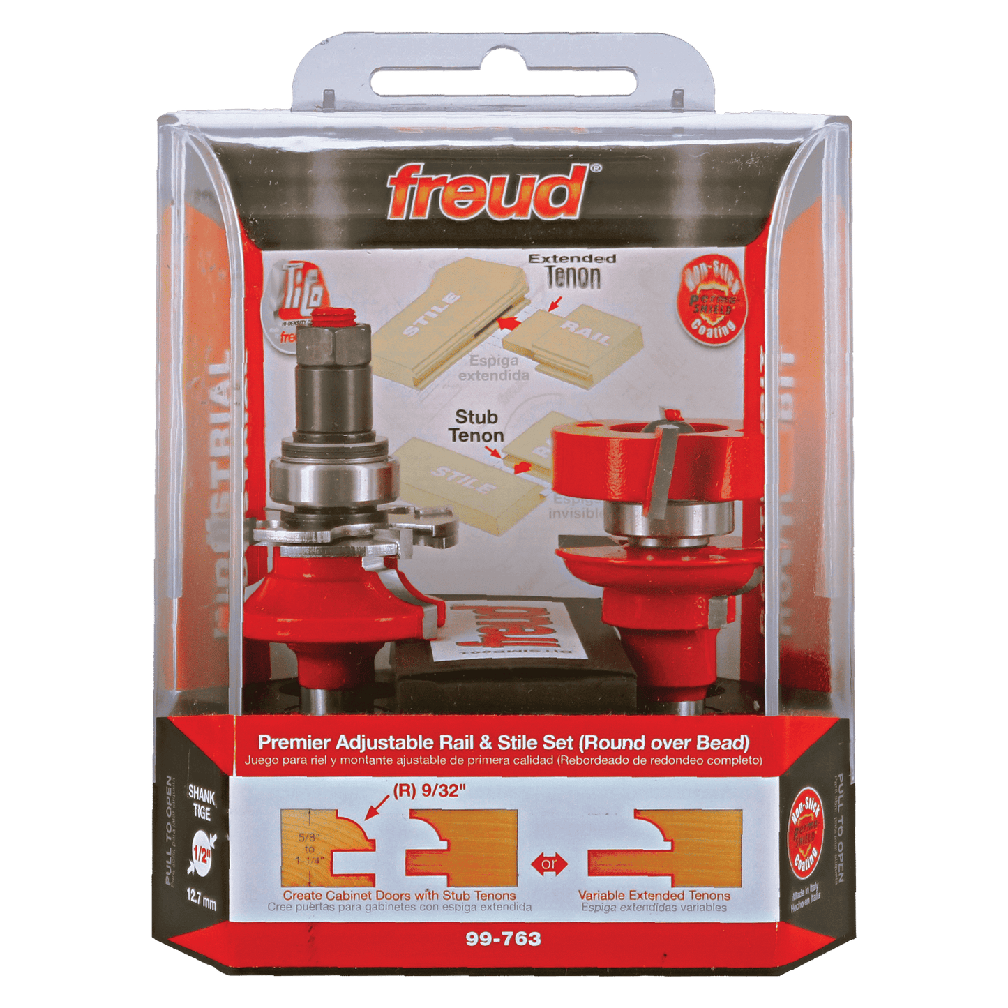 Freud, 99-763 Premier Adjustable Rail and Stile Router Bit Set (Round Over Bead) 1/2'' Shank Router Bit