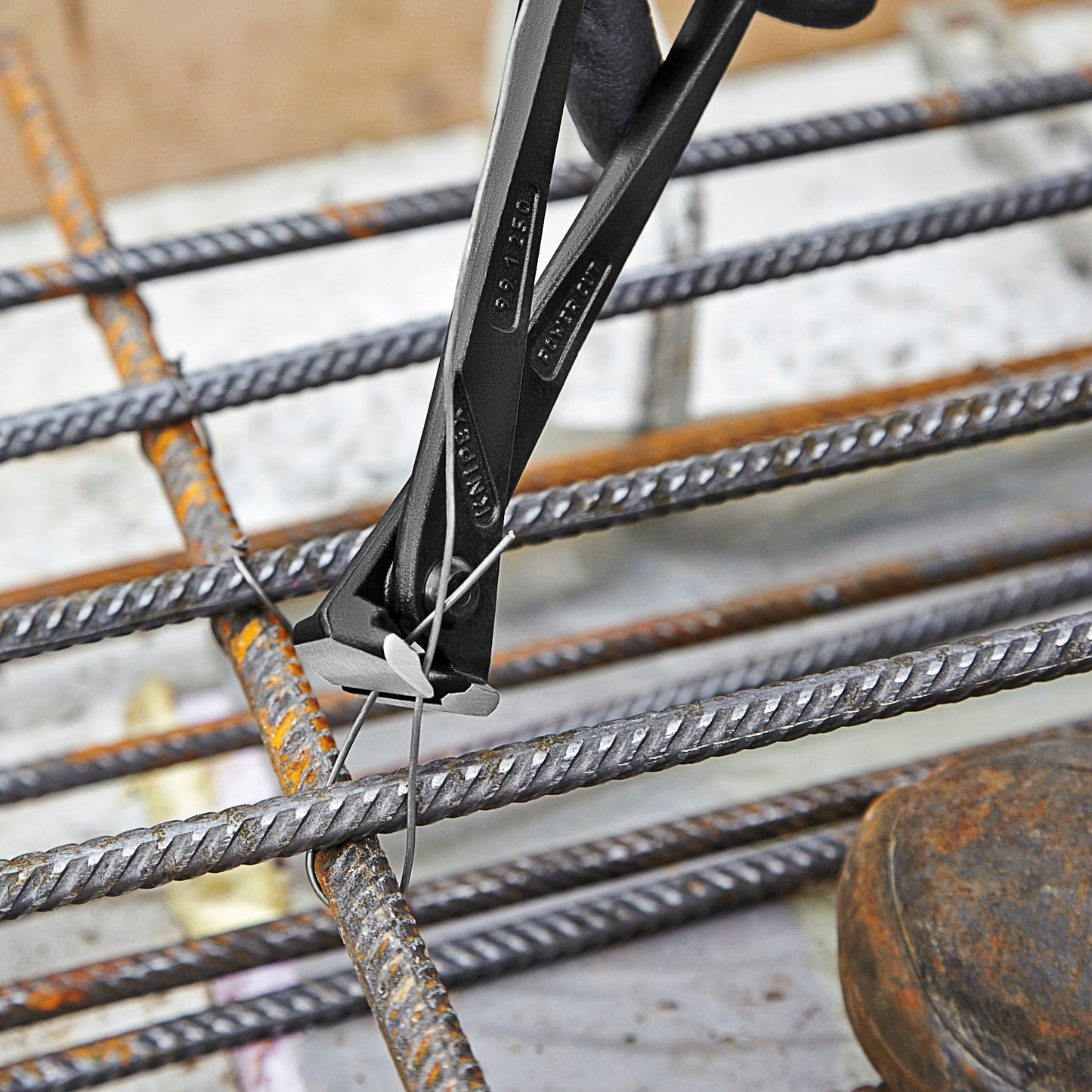 • High Leverage Concreters' Nippers. To lace concrete reinforcing steel with binding wire from a roll. Wire is twisted and cut in a single pass. High-leverage joint, minimizing strain, even when thick binding wires are used. Extra-slim form for tying deep mounted steel rods. The high damping of the cutting stroke on cutting through the binding wire reduces the strain on tendons and muscles. Cutting edges additionally hardened; cutting edge hardness approx. 61 HRC. High-grade special tool steel, forged, oil-hardened