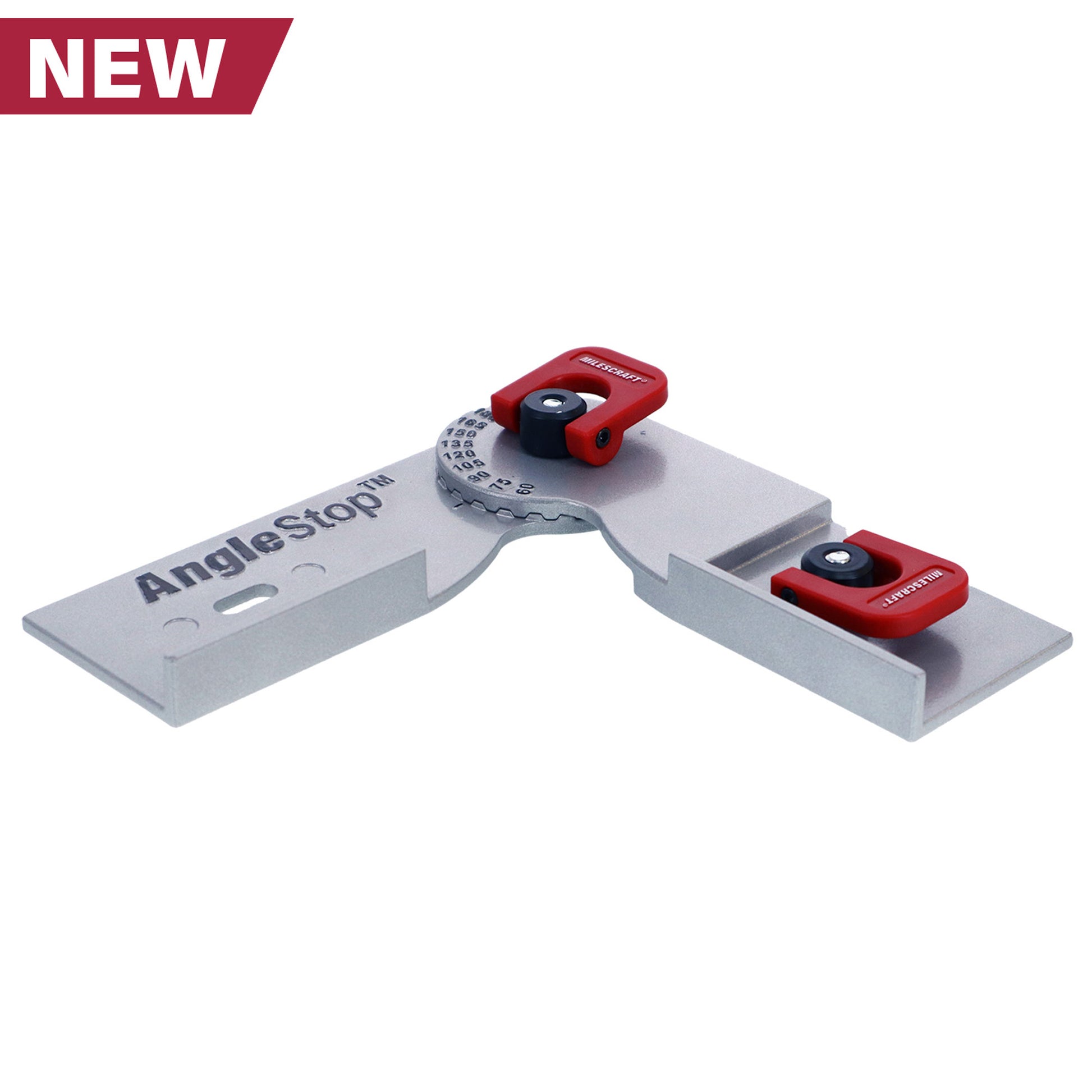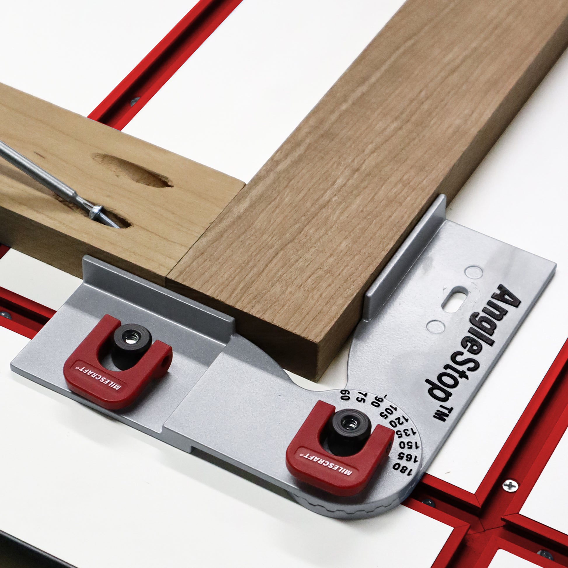 This variable-angle T-Track stop and clamping solution can change to match the shape needed to support angled work pieces.