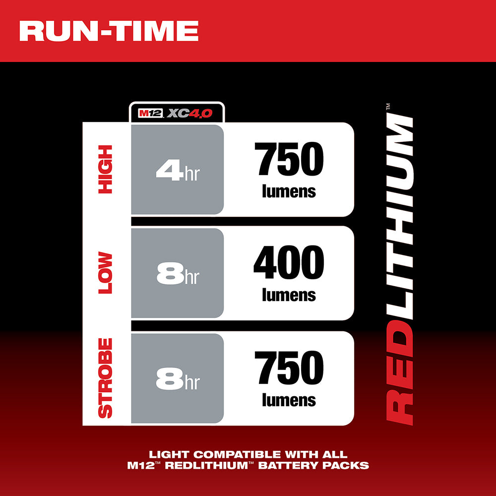 • Spots farther, lasts longer – the new TRUEVIEW M12 LED spot light gives professionals the most portable, high performance spotlight to illuminate, identify, and diagnose on and off the jobsite. The 2353-20 has a beam distance of 700 Yd., offering the ability to spot objects and areas a long distance away. It has high and a low output modes of operation for long distances, more clarity in closer situations, as well as a strobe mode for safety situations. The M12 LED spot light can run for up to 4 hours in its high mode with an M12 REDLITHIUM XC 4.0 battery pack, and up to 8 hours in low and strobe modes. The 2353-20 is impact and water resistant to survive professional use, and it features an impact-resistant lens cover. Its high quality LED never needs to be replaced, and is backed by a Limited Lifetime Warranty.
