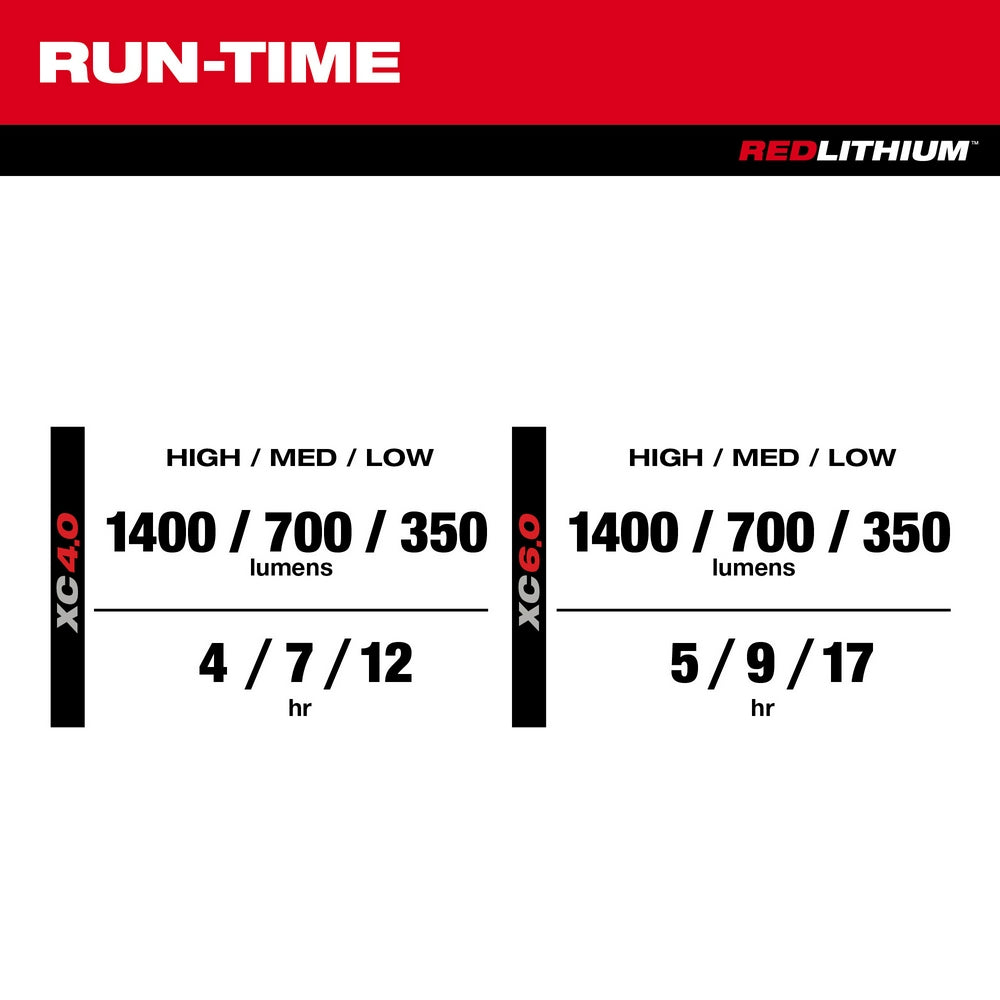• Over 4 Hours of Run-time on HIGH with an M12™ XC4.0 Battery
