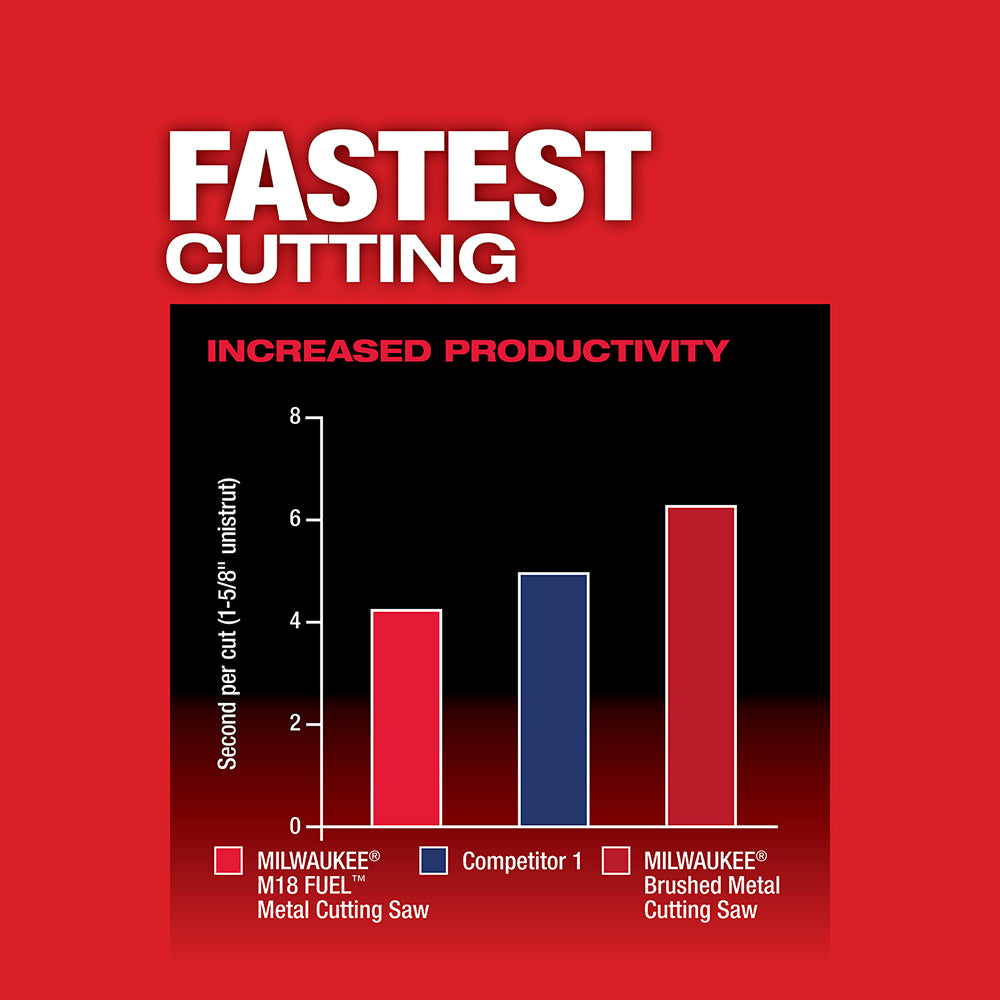 • Brushless motor with 3,900 RPMs delivers the fastest cutting metal cutting saw