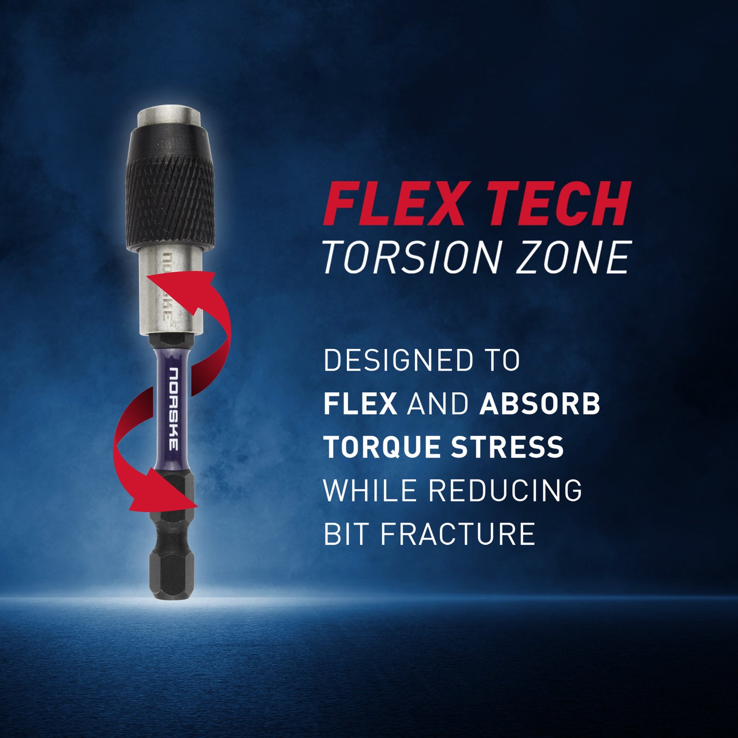 • Innovatively designed flex tech torsion zone absorbs high torque stress and reduces bit fracture