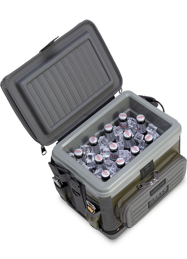 Compared to the LBC-10, the larger LBC-15 lunchbox-sized cooler provides an additional 305in3/5 liters of non-insulated storage within the lid. Unzip either side of the lid to slide out an injection molded plastic storage drawer; or remove completely to use as an eating tray. The LBC-15 also includes 6 additional exterior everyday carry storage pockets around the perimeter of the bag, including a pocket perfect for an eReader or small tablet computer. Note: Ice Pack not included.
